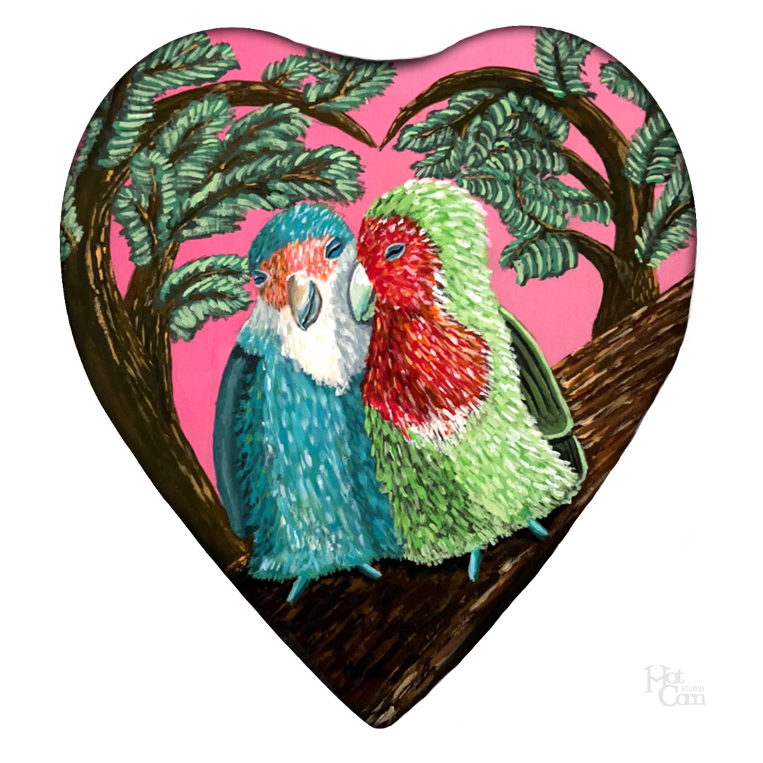 A couple of Lovebirds (Agapornis) snuggling together on the branches of a tree